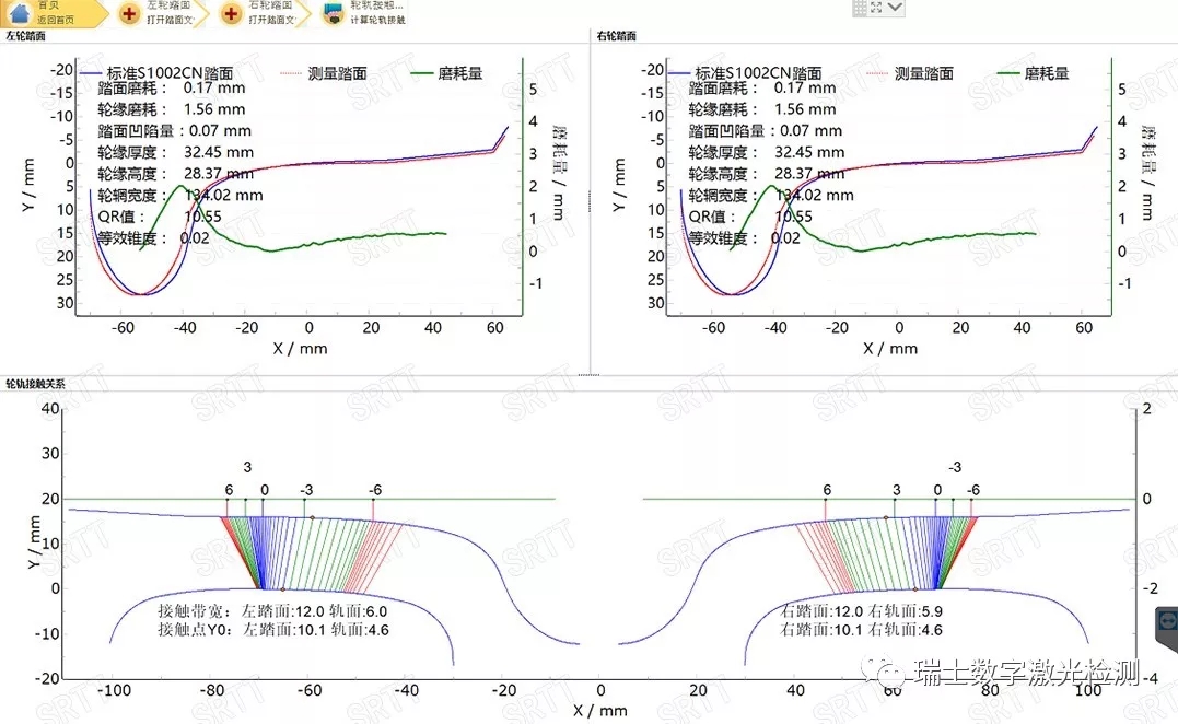 ★车轮踏面几何尺寸测量:轮缘厚度、轮缘高度、QR值;